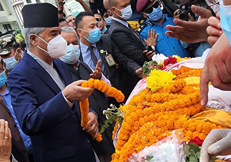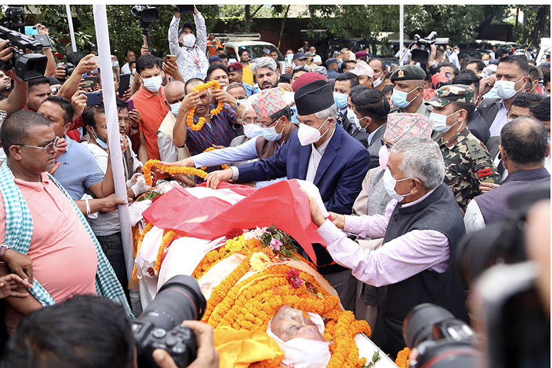 सभापति देउवासहित वरिष्ठ नेता रामचन्द पौडेलले पार्टी केन्द्रीय कार्यालय सानेपामा राखिएको गिरीको पार्थिव शरीरमा पार्टीको चारतारे झण्डा ओढाएर उनीप्रति श्रद्धाञ्जली र सम्मान अपर्ण गरेका हुन् ।