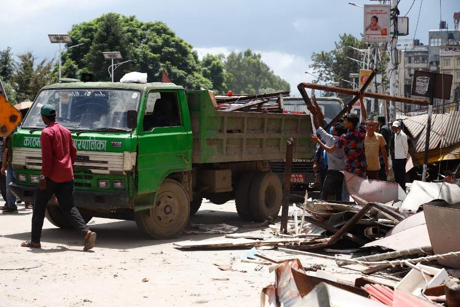 काठमाडौं प्लाजाअघिका अवैध संरचना महानगरले भत्कायो (फोटोफिचर)